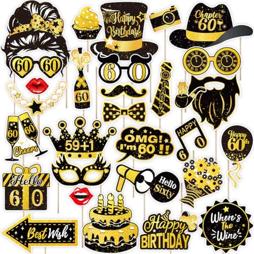 Konsait 30 PCS Colorful Happy Birthday Photo Booth Props, Birthday Party Decorations Funny Photo Booth Props Selfie Props for Adult and Kids