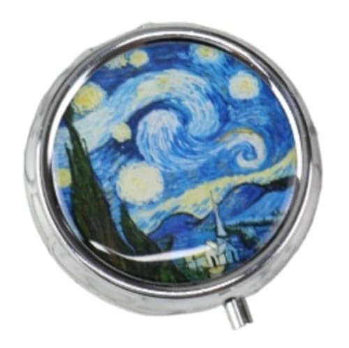 Stylish Night Stained-Glass Flower Themed Pill Box with 3 Compartments 鈥 Compact and Durable Organizer for Supplements and Medication