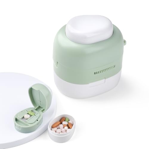Qeedee Pill Cutter for Small Pills, Adjustable 1/2 1/4 Splitter with Improved Hidden Blade, Portable 2-in-1 Pill Splitter for Elderly and Pets, Green