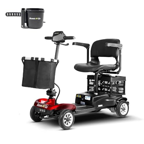 SCOOTNGO Mobility Scooters for Seniors & Adults, 4 Wheel Electric Travel Mobility Scooter with Dual Removable Batteries, Lightweight Foldable Airline Approved, 15 Miles Range, 5 MPH (Black Red, Standard)