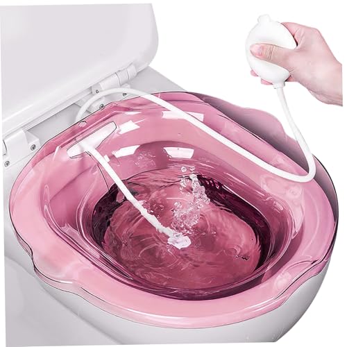 Sitz Bath for Toilet, Portable Over The Toilet Sitz Bath with Flusher, Sitz Bath for Hemorrhoids, Sitz Bath Postpartum for Hemorrhoids Postpartum Private Care (Pink)