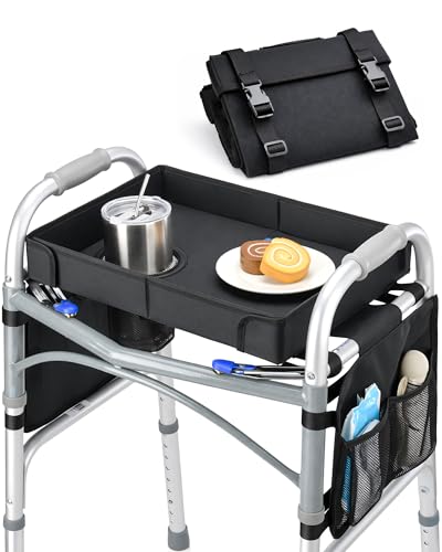 Walker Tray with Two Cup Holder - Folding Rollator Desk Lap Board Eating Aid for Nursing Patient, 11"W x 16"L