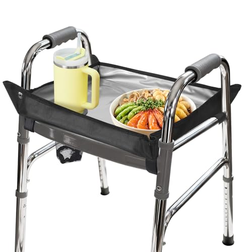 HOOMTREE Walker Tray for Folding Walker, Trays for Walkers for Seniors detachable with Cup Holder,Walker Trays for Rolling Folding Walker,Walker Accessories for Elderly