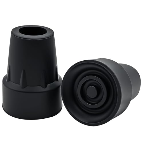 2 Pack Replacement Cane Tips, 3/4 Inch(19 mm) Rubber Cane Tips for Canes, Walking Sticks, Walkers, Walking Cane Accessories, Heavy Duty Rubber Cane Tips, Black