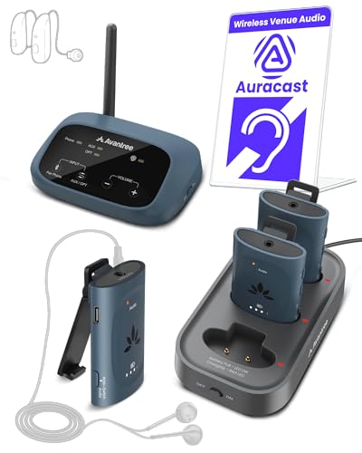 Avantree AuraPlex M3 鈥 Auracast Assistive Listening System for Churches, Works with Auracast Devices, 1 Transmitter & 3 Receivers, Expandable, 100m Range for Classrooms & Events