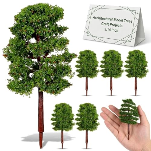 OATIPHO 20 Pcs Architectural Model Trees Set - Green Miniature Scenery Landscape for Dioramas Train Layouts and Craft Projects 3.14 Inch Dark Green