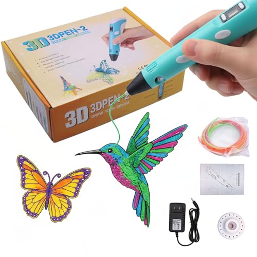 Kretrum 3D Pen for Kids | 3D Printing Pen with LCD Display | 3D Painting Pen with 1.75mm PLA Filament, Fingerstall, Pen Holder, Stencil Book, Charger| Best Gift for Children Crayon 3D Stylo 3D