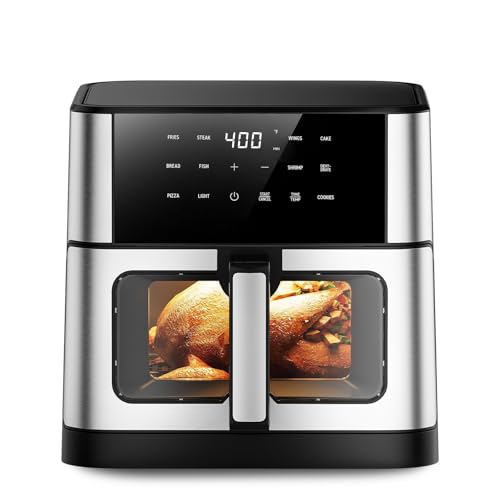 Kenmore 8 Quart Air Fryer - Aerogrill, Non-Stick Frying Basket, French Fry, Digital Touch Screen, 12 Presets, Friteuse 茅lectrique, Countertop Cooking Kitchen Appliance, Stainless Steel, Black