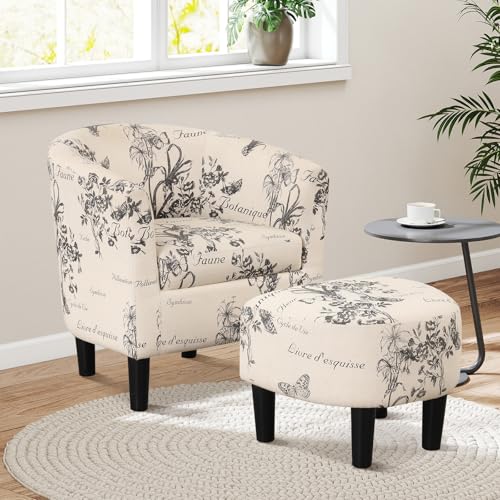 Givjoy Lazy Chair and Ottoman, Large Accent Lounge Chair with Armrests and a Side Pocket, Modern Leisure Upholstered Sofa Reading Armchair with Footrest for Bedroom, Living Room, Dorm Rooms, Office