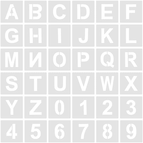 36Pcs Letter Stencils Reusable Templates Letter and Number Stencils Interlocking Stencil Kit Plastic Spray Paint Alphabet Number Stencils for Wood,Wall,Paper,Fabric,Glass,Signage,DIY Art Projects, 1inch