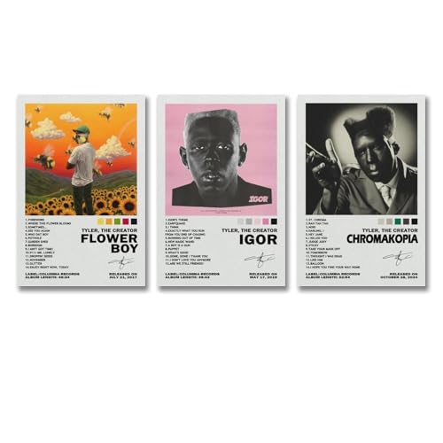 A Set Of 3 Tyler Poster The Creator Album Cover Signed Poster for Room Aesthetic Canvas Wall Art Bedroom Decor 08x12inch(20x30cm)-3pcs