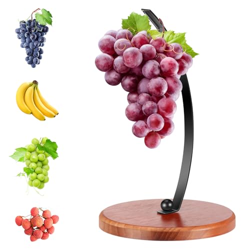 BOXOB Wooden Banana Holder Stand, Rustic Wood Banana Hanger with Metal Hook for Countertop Kitchen Storage Grape Holder to Keep Fruits Fresh (Assembly Required)