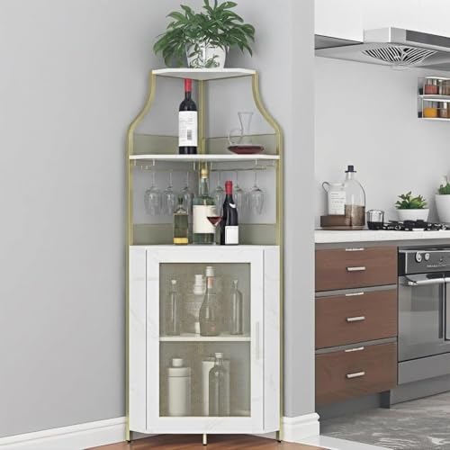 PeacefulHues 4-Tier Foldable Corner Wine Rack Cabinet, MDF & Metal Wine Storage Cabinet for, Compact Freestanding Wine Organizer