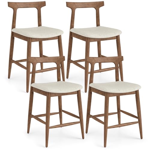 LUE BONA 26 Inch Counter Height Bar Stools Set of 3, Linen Upholstered Barstools, Barstool with Back, Comfortable Bar Chairs, Modern Counter Stools for Kitchen Counter Island