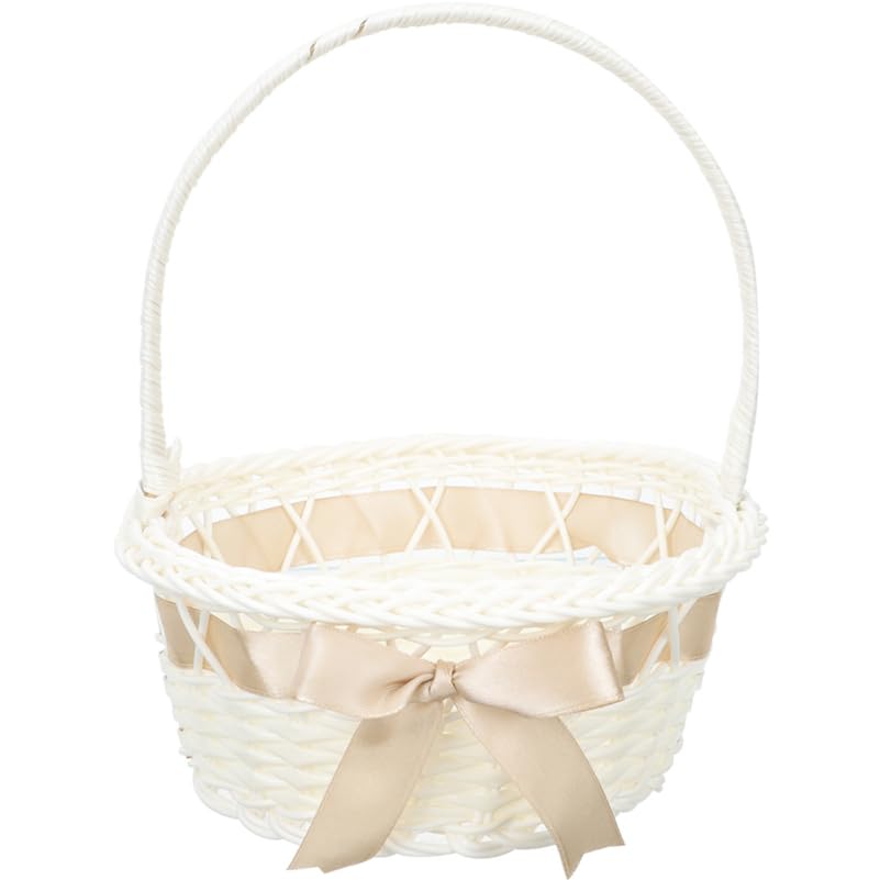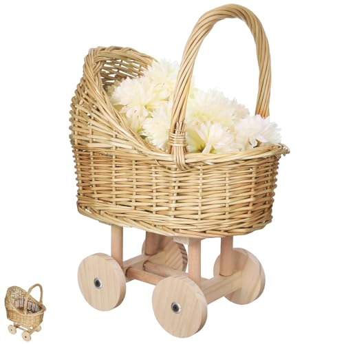 VICASKY Vintage Wicker Baby Carriage for Shower Decor Woven Rattan Stroller Flower Girl Basket with Handle