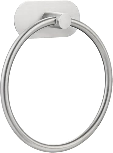 NearMoon Self Adhesive Hand Towel Holder/Towel Ring, Stainless Steel Hand Towel Bar Rustproof Stick on Wall-Towel Rack for Bathroom/Kitchen, Sticky and Wall Mounted (1, Brushed Nickel)