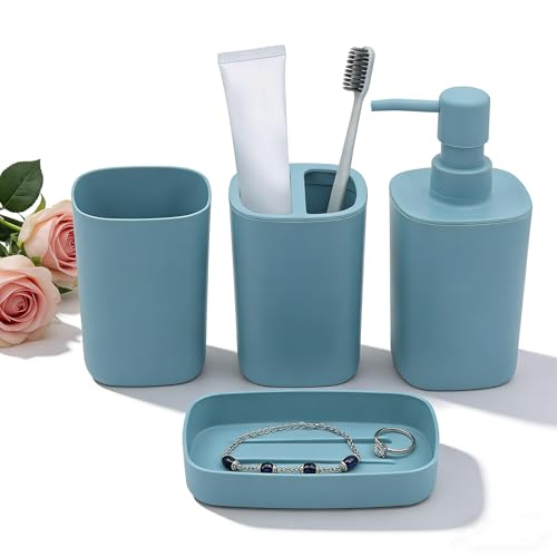 Bathroom Accessories Set, Shinowa Marble Look Toothbrush Holder and Soap Dispenser Set, Bathroom Countertop D茅cor Sets with Lotion Dispenser Soap Pump, Tumbler, Bathroom Organizer Accessories