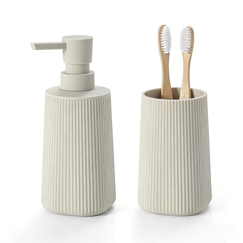 ZCCZ Bathroom Accessories Set 4 Pcs, D茅cor Bathroom Vanity Countertop Accessory Set with Soap Dispenser, Toothbrush Holder, Bathroom Tumbler and Soap Dish