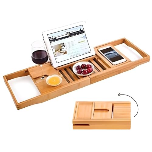 Yirilan Bamboo Bathtub Tray, Expandable Bathroom Tray, Waterproof Tray Caddy, Perfect Bath Caddy for Home Spa, Gift for Loved Ones-Bamboo