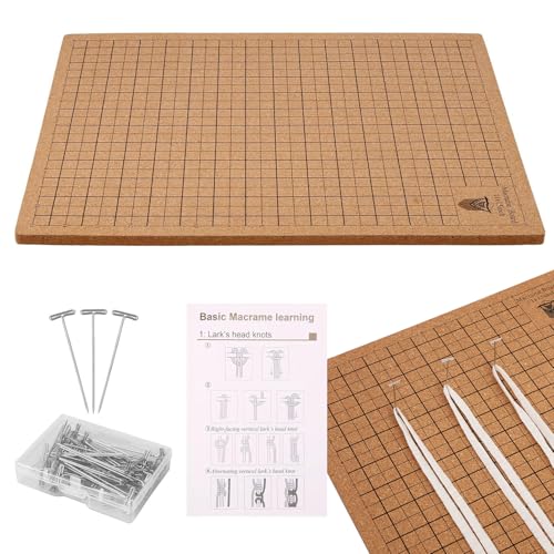 12X16 in Macrame Board for Braiding & Cording: Cork Double-Sided Grids Handmade Braiding Board and Pins for Braiding Bracelet Creating Macrame and Knotting Creations