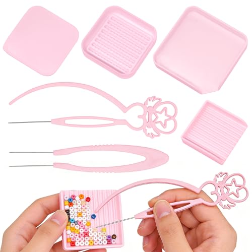 5pcs 2.6mm/0.1in Fuse Bead Tools Set with Single Needle Tweezers Aligner Tray & Sorting Tray, Efficient Iron Bead Picking & Sorting Kit for DIY Crafts Art Enthusiasts