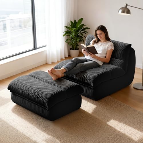 Bean Bag Chair for Adults - Large Bean Bag Chairs, Memory Foam Bean Bag with High-Rebound, Oversized Corduroy Boneless Chair, Lazy Floor Sofa for Reading Gaming Living Room Bedroom (Black)