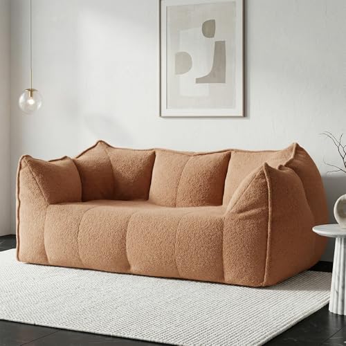 MAXYOYO Bean Bag Chair, Faux Fur Bean Bag Chair for Adults and Kids, Comfy Large Sofa with Back Support, Stuffed Floor Sofa for Living Room, Bedroom, Apartment, Beige