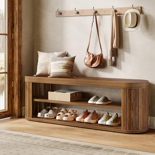 WAMPAT Dining Bench for Dining Room, Farmhouse Kitchen Padded Benches with Solid Wood Leg, Upholstered End of Bed Bench for Bedroom, Wooden Entryway Benches for Hallway, 52", Oak