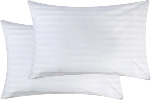 Kingnex 4 Pack Waterproof Feather Proof Pillow Protectors with Zipper on Long Side Queen Size Set of 4 Down Proof Striped Bed Pillow Covers