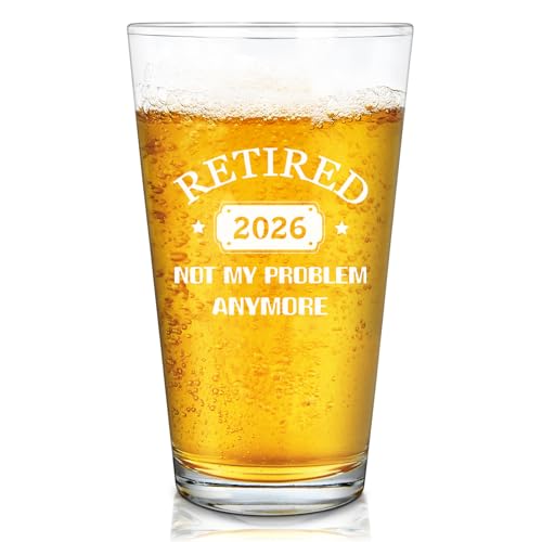 Onebttl Retirement Gifts for Men,"Goodbye Tension Hello Pension" Retirement Beer Glass 15oz (443 ml), for Dad, Police, Teacher, Boss, Best Friend, Gifts for Retired Men (Greeting Card Included)