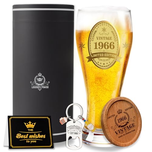 1966 60th Birthday Gifts for Men, Pint Glass 1966 580 ml Mens 60th Birthday Gifts, Personalised Decorations Beer Glasses, Dad Husband Grandad Birthday Gift Box with Coaster, Bottle Opener