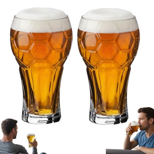 Keenso Beer Glasses, Soccer Trophy Beer Glass with Thick Base, 600ml Capacity for Parties and Football Fans