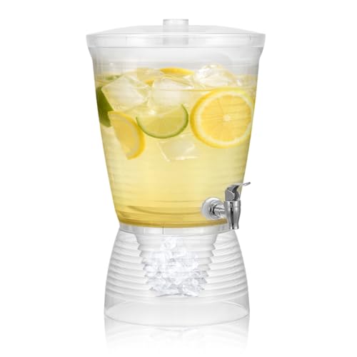 Navaris Drink Dispenser - 1.5 Gallon(5.6L), with 18/8 Stainless Steel Leakproof Spigot, Glass Beverage Dispenser for Parties, with Wood Lid & Handle, Ideal for Lemonade, Juice, Tea