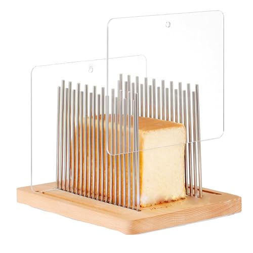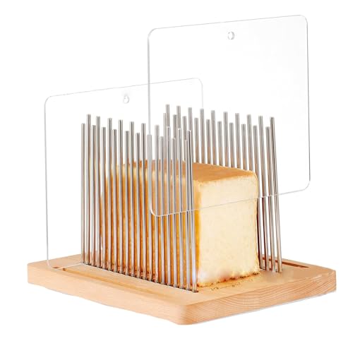 Manual Bread Slicer, Adjustable Stainless Steel Guide - Foldable Compact Slicer for Homemade Loaf, Wood Base