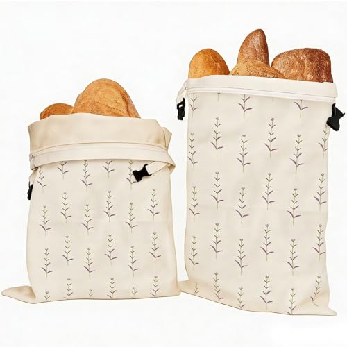 2 Pack Bread Bags for Homemade Bread, Linen Bag for Bakery Picnic Wedding Wrapping Camping(Large Bread + Large Ears of Barley)