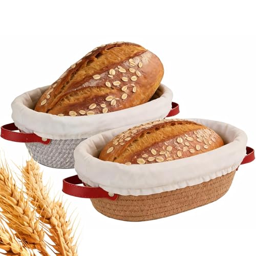 Cotton Rope Banneton Bread Proofing Basket with Liners & Covers, Oval & Round Bread Baskets for Artisan Baking, Sourdough Baking Supplies, Banneton Basket for Bread Enthusiast (9'' & 10'')