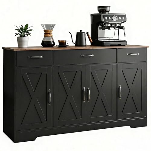 FINETONES Sideboard Buffet Cabinet with Storage, 55" Long Buffet Cabinet with 4 Doors & 2 Large Drawers, Modern Sideboard Coffee Bar Console Table for Kitchen, Blue
