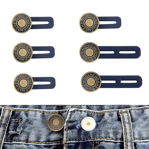 Elastic Button Extenders for Men and Women, Waist Extenders Adjustable for Pants, Trousers, Dress and Jeans, 6-Pack (Black)