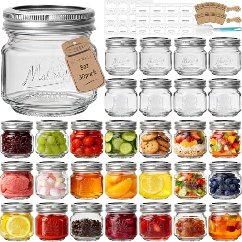 4 oz Clear Glass Jars with Lids (Silver),Betrome 100ml Mason Jars Round Canning Jars Small Spice Jars for Herb,Jelly,Jams Clear Containers for Kitchen Storage,40 Pack with Labels &1 Pen