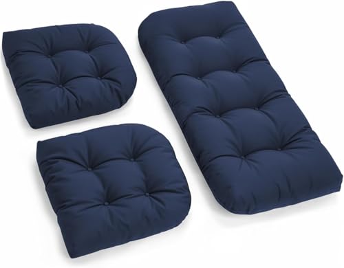 U'Artlines Outdoor Chair Cushions Set of 2,17"x16"x2" Waterproof Patio Chair Cushions for Outdoor Furniture, Round Corner Seat Chair Pads with Adjustable Ties for Patio Garden Dining Office Navy Blue