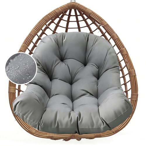 Thicken Papasan Chair Cushion, Double Outdoor Waterproof Cushion With Ties, Dark Gray, 66.9 * 47.2 Inch