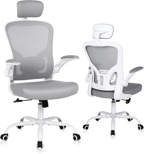 Ergonomic Office Chair, High Back Office Chair with Flip-Up Headrest Mesh and Rolling Swivel Computer Task Chair Comfortable Lumbar Support Gaming Chair for Home Office, Bedroom