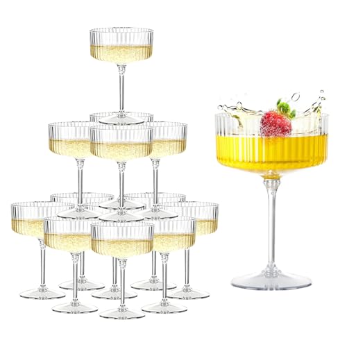 Elsjoy 8 Pack Acrylic Champagne Flutes, 6 Oz Stemmed Champagne Glasses Unbreakable Champagne Coupes, Reusable Champagne Toasting Cups for Wedding, Party, Bar