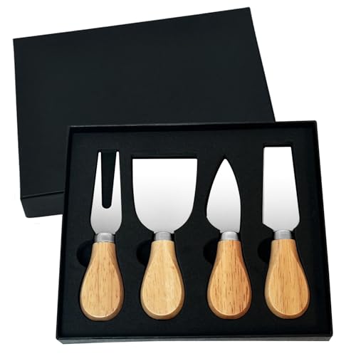 4 Pcs Cheese Knife Set RUIFUNETEK Stainless Steel Wood Handle Cheeses Knife, Cheese&Shovel, Cheese- Fork, CheeseBlock Knife, Cheese Slice Knife for Butter, Charcuterie, Cake, Dessert or Salad