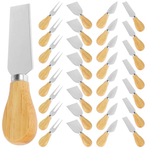 Cheese Knives Set with Wooden Handle, Mini Steel Stainless Cheese Knife Set for Charcuterie and Cheese Spread Mini Serving Tongs Spoons Forks Toothpick Flags for Party Wedding Christmas (Option 1)
