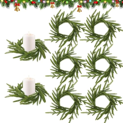 KORMMCO 4 Pieces Christmas Candle Ring, Red Berry and Pinecone Xmas Candle Ring Wreath with 2 Candle Holders for Home Wedding