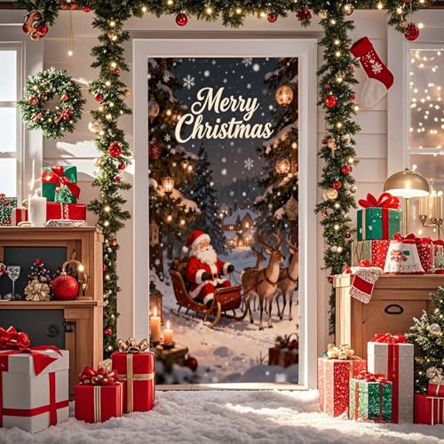 Christmas Door Cover Elastic, Stretchy Door Cover Christmas, Fabric Elastic Christmas Door Covers for Front Door, Festive Party Home Decor (A)