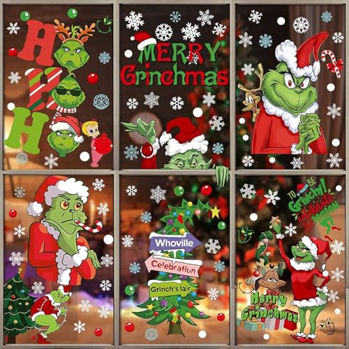 146 PCS White Christmas Window Clings for Glass, Double-Sided, Reusable Static Clings, No-Glue, Removable Christmas & Winter Wonderland Decorations for Windows and Doors (9 Sheets)
