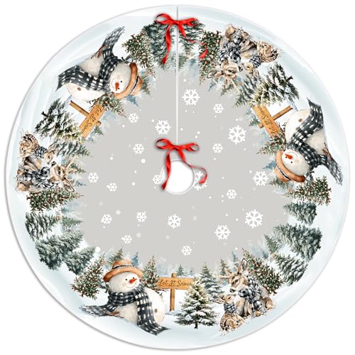 Artmag Merry Christmas Tree Skirt 36 inches Large Luxury Faux Fur White Red Tree Skirt with Snowflake Double Layers Soft Tree Skirt for Christmas Holiday Decorations