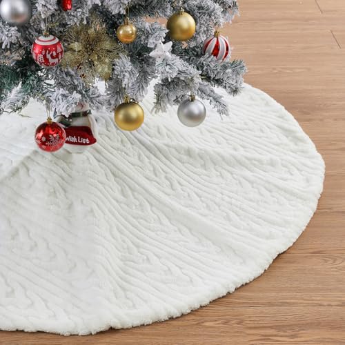 AOGU 48 Inch Faux Fur Christmas Tree Skirt White Plush Skirt for Merry Christmas Party Christmas Tree Decoration